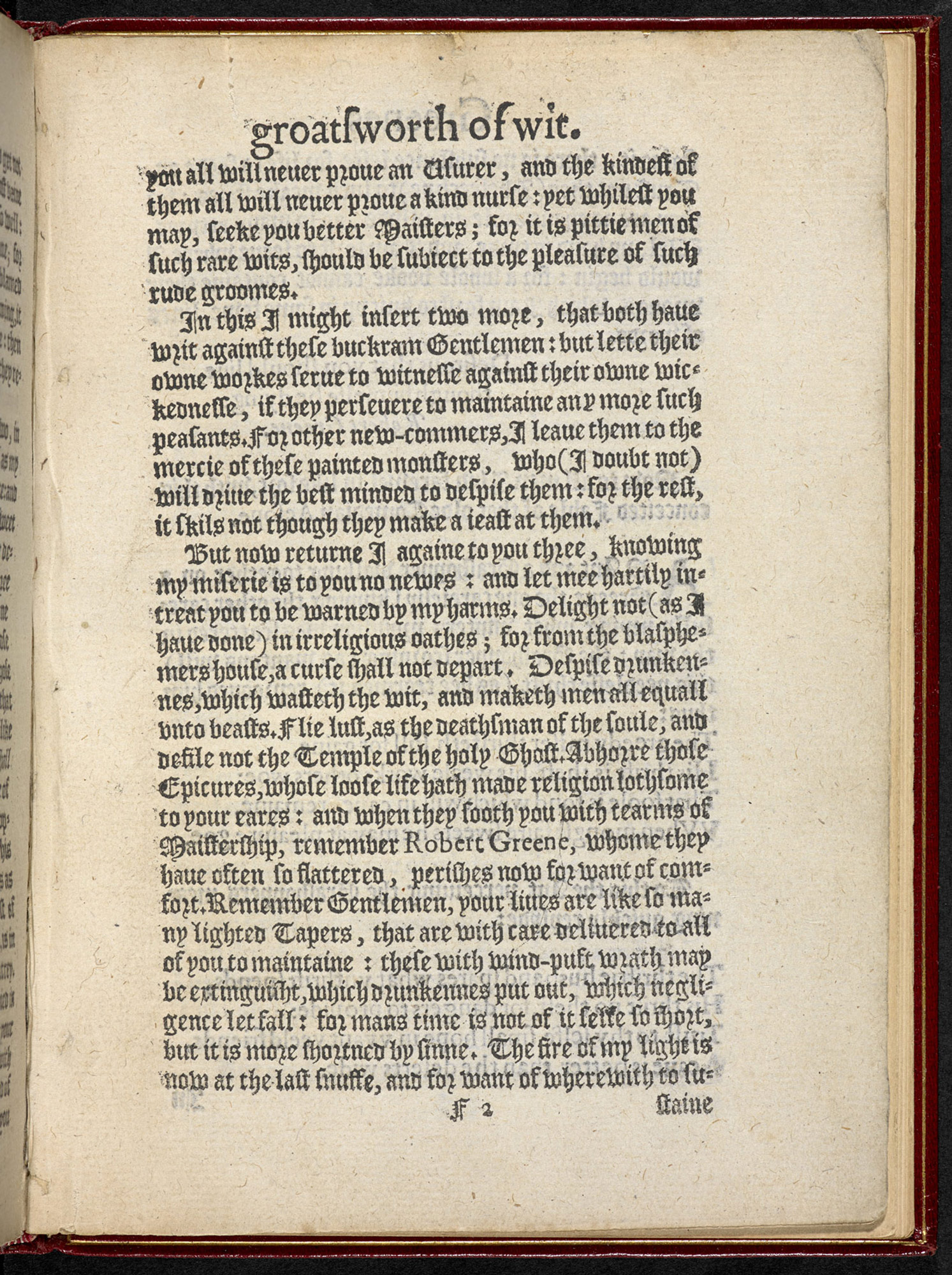 Greenes Groats-Worth of witte, bought with a million of Repentance. Describing the follie of youth, the falshood of make-shifte flatterers, the miserie of the negligent, and mischiefes of deceiuing Courtezans. Written before his death and published at his dyeing request. (To those Gentlemen his Quondam acquaintance, that spend their wits in making plaies, R. G. wisheth a better exercise, and wisdome to preuent his extremities.)