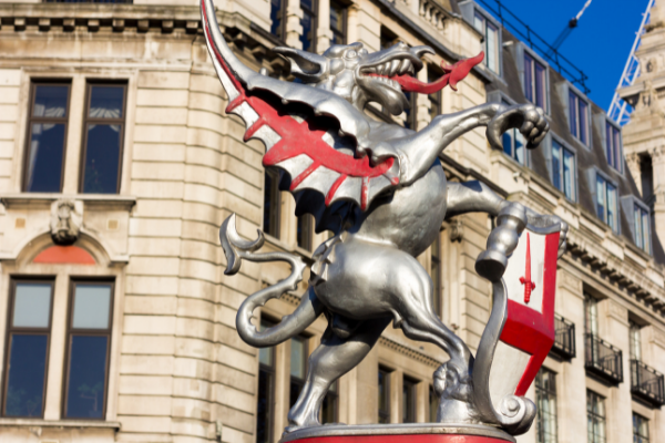 The origin of the dragons isn’t clear. Some say that they come from the story of George and the Dragon as St George is the patron saint of England. The sword and the dragons certainly distinguish the coat of arms of the City of London from those of England. In England, we associate St George with slaying the Dragon and indeed dragons guard the City of London and mark out the different gates around the city i.e Aldersgate, Bishopsgate, Temple Bar, Bridge Gate and Moorgate. As with dragons being used in stories to protect something i.e.; Smaug in J.R.R Tolkein’s 1937 novel The Hobbit protects Erebor (for himself) are the City of London dragons there to protect the city?