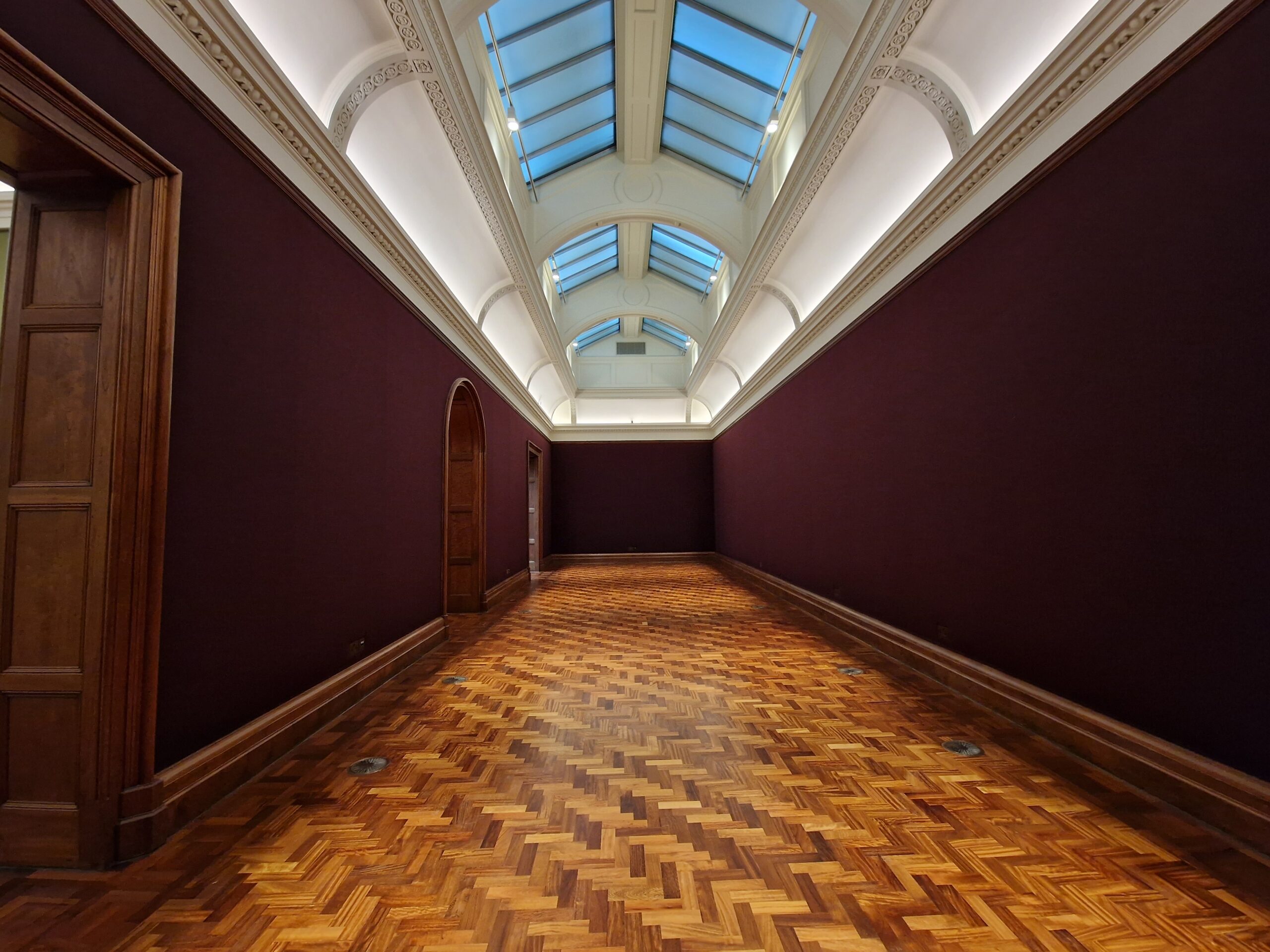 Over the intervening years, the building was expanded, first in the 1930s with the Duveen Wing bringing much-needed larger hanging space. In the late 1990s, a courtyard shared with the National Gallery was converted into a new ticket hall, hanging space and a top-floor restaurant with some of the best views of London over Trafalgar Square and down Whitehall. The cost of taking this courtyard was that the Portrait Gallery gave away the east wing of the building to the National Gallery. Cleverly, Ewan Christian knew that the neighbours were wealthier and more politically powerful so he made sure that the floors were at a different elevation meaning the National Gallery could never use any portrait hanging spaces they might acquire for hanging space. Instead, the National Gallery used the east wing as office space. Over the intervening years all windows and skylights were closed; first for the blackouts to protect from aerial bombardment and then to have greater control of the 20th-century electric lighting.