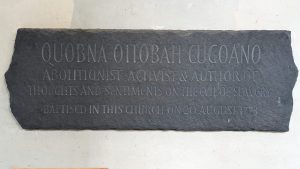 The plaque to commemorate the 250th anniversary of the baptism of Ottobah Cuguano in St. James’s church, Piccadilly. Photo by Philip Scott.