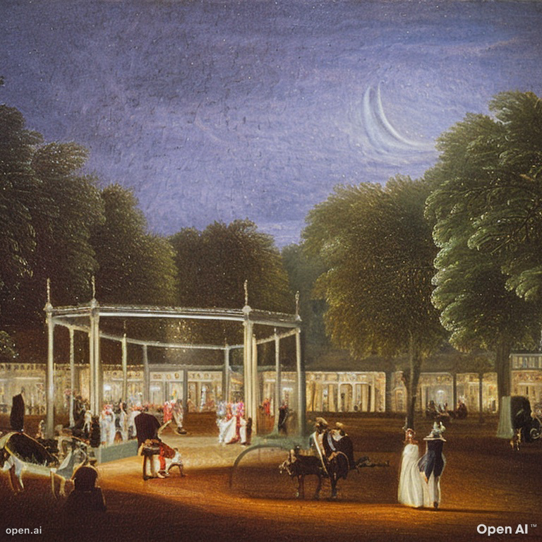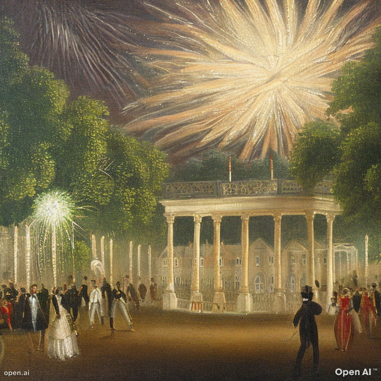 Destmus Burton gave Hyde Park a make-over in the 1820s, and it hasn’t really changed very much then. The end of the Regency officially ended with the coronation of George IV. The Prince Regent had now been promoted to King. And that was in the 19th of July, 1821. And in Hyde Park, there was a regatta and boat race on the serpentine followed by illuminations by coloured lamps and Chinese Lanterns and a huge firework display.