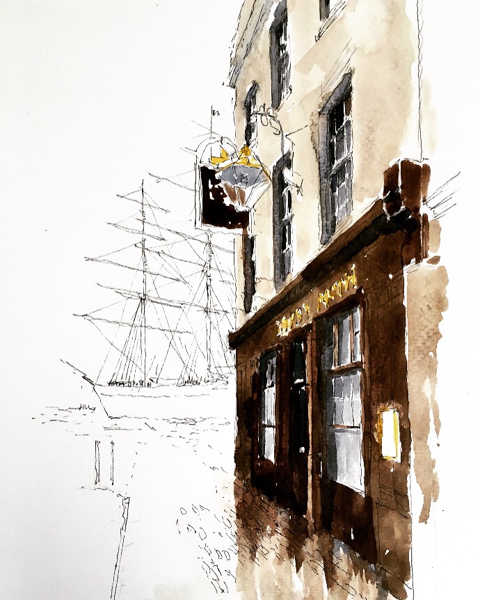 And then you’ve got More London which is very modern but has nice spaces. And then you’ve got these great vistas, where you can see all of London and the Tower Bridge, and then you’ve got Shad Thames with fantastic warehouses and you can just soak up the history and you really feel the different shadows and traces of past and the things that happened in those places. So I can see it all. I think that’s my favourite area, and rich for just popping into town and doing a bit of sketching.