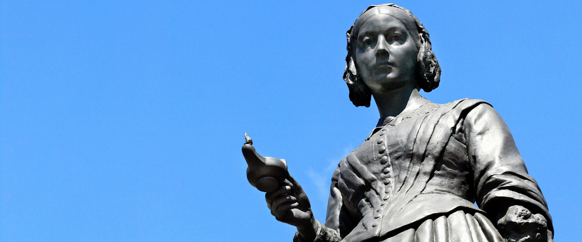 “She is a ministering angel. Without any exaggeration in these hospitals and as a slender form glides quietly along each corridor, every poor fellow’s face softens with gratitude at the sight of her. When all the medical offices have retired for the night and silence and darkness have settled down upon these miles of prostrate sick, she may be observed alone with a little lamp in her hand, making her solitary rounds.”