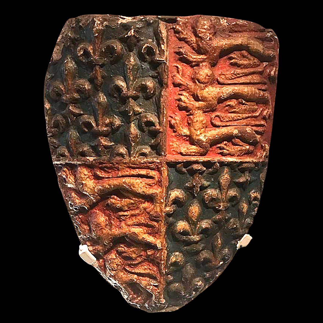 Hazel Baker: And they’ve got a shield of the Royal arms as well there. I thought that was a copy but it’s actually an original. That’s huge. Isn’t it? That was from the 1300s as well. And it said about the arms after 1340, when Edward III claimed the throne of France and included the fluidly of France alongside the three lions of England. So this is the first time we get to see it.