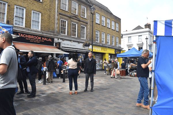 The area sports an array of market stalls largely dedicated to take away eating and I must say a particularly mean falafel at a very reasonable price, can be purchases among other foods. Westminster Council’s pitch details, Asian, middle eastern, savoury waffles, Afghani, Thai, Turkish, Iranian, Moroccan, Palestinian, Jordanian, and Japanese food most days of the week except Sunday. Fishmongers and butchers, together with fresh produce suppliers of cheese and bread ply their trades alongside costermongers on a Thursday to Saturday.