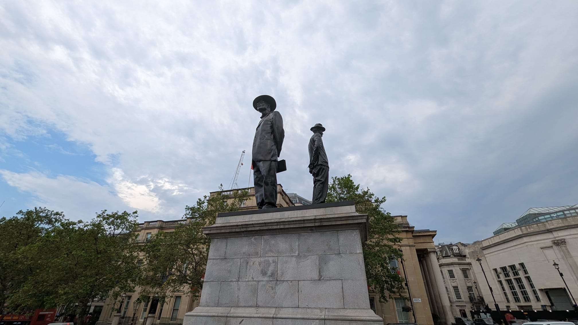 For nearly a century, the plinth designated for the king’s statue remained empty until 1999. Since then, temporary artworks have graced the plinth, providing an ever-changing display. Presently, the sculpture “Antelope” by Samson Kambalu adorns the plinth. The artwork features Revd. John Chilembwe, an African man who valiantly fought against British colonial rule in Nyasaland (now Malawi) and ultimately lost his life in the struggle. Chilembwe stands alongside John Chorley, a friend and Christian missionary. The statue emphasizes their significance by increasing their height, highlighting the underrepresented nature of their stories. Notably, both figures wear hats, defying the colonial rule that forbade Africans from wearing hats in the presence of white individuals—a poignant representation of the historical oppression endured.